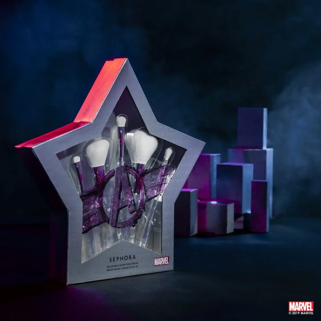 The Marvel brush set comes with 2 face and 3 eye brushes each tagged with a different hero such Black Panther, Iron Man, Captain America and more. The set includes brushes for applying powder, blush, eye shadow smudging, and eye shadow packing.