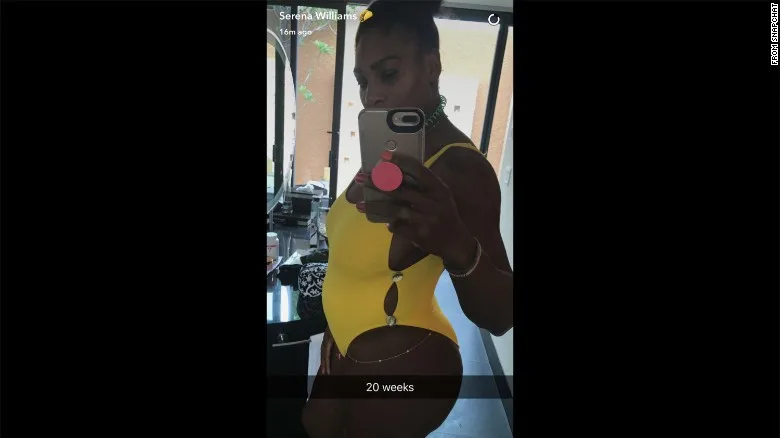 On Wednesday (19th April), the 35-year-old tennis player took to Snapchat to share a photo of her baby bump, with the caption “20 weeks”.