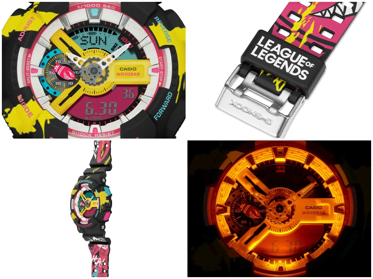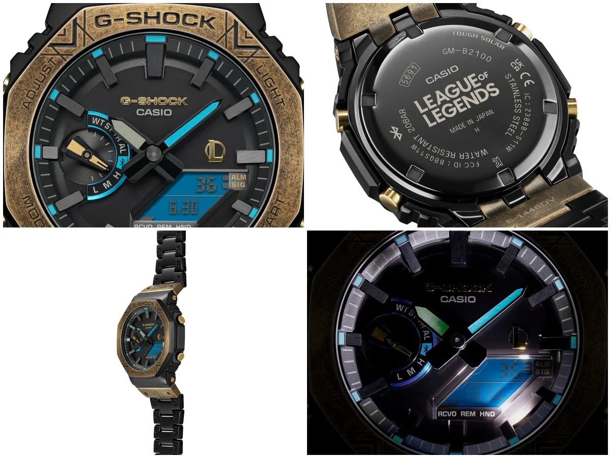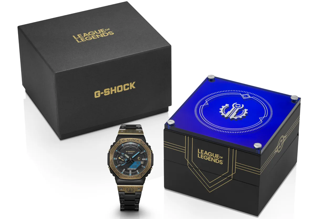 The new shock-resistant GM-B2100LL and GA-110LL, which are based, respectively, on the full-metal GM-B2100 with octagonal bezel and the GA-110 with its distinctive three-dimensional dial, evoke the realistic game world with League of Legends details throughout, including the dial, case, and band.