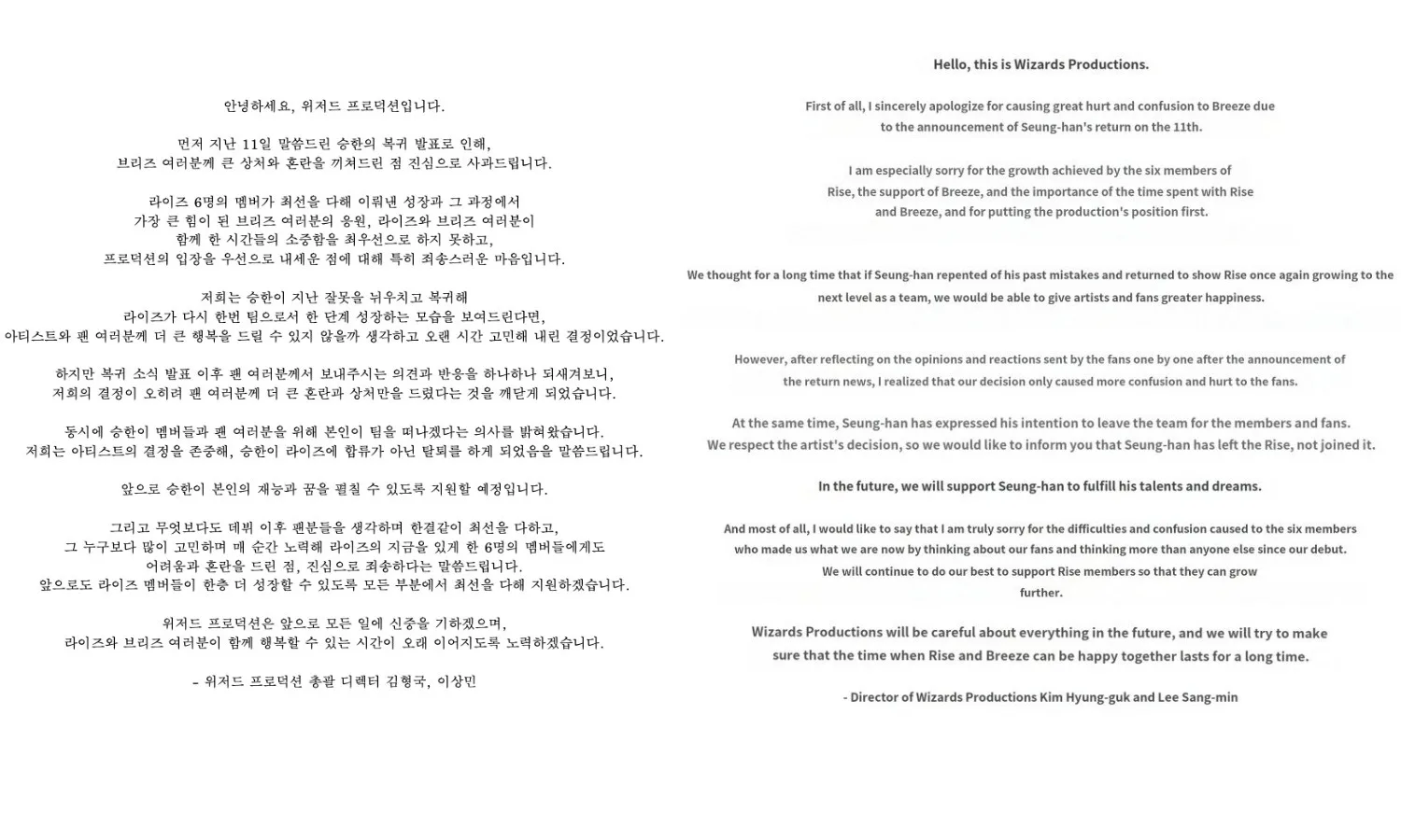 Two days later, SM Entertainment released a notice claiming that Seunghan would be leaving the group of his own will. It is said that the idol made this decision for the sake of his group members as well as his fans. In the statement, it is said that the singer apologised for all the damage and trouble that was caused to the other members.