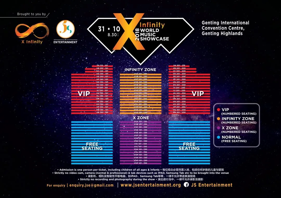 To recap, the details to JS Entertainment’s “X Infinity World Music Showcase 2018” are as follows:
