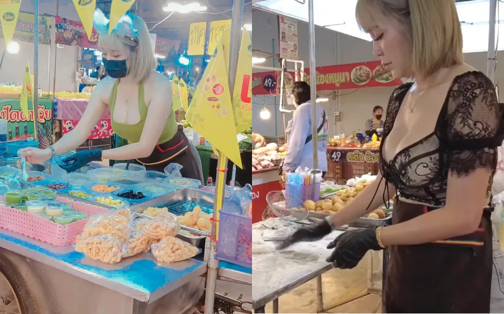 A certain tofu stall from a market in the Kanchanaburi Province, Thailand has recently gone viral. And, it’s mostly thanks to its 29-year-old stall owner! The proprietress, Chomphunuch Na Songkhla, is best known for the provocative way she dresses to run the stall. However, Songkhla claims that while her outfit may attract customers, most actually stay for the food!