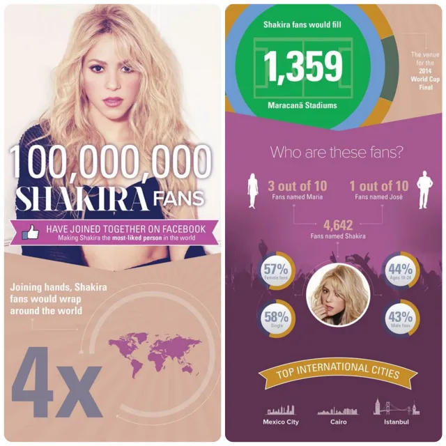 Just as well because the only other page to have more likes than Shakira is Facebook’s own brand page, standing at 161,004,575 likes as at time of writing.