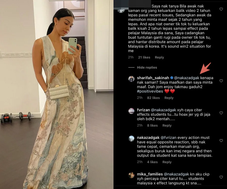 In response to that, Sakinah surprisingly revealed that no legal action would be taken against the person who posted the video. The hot mummy wrote, “Why would I want to sue? I have forgiven and apologised. There there, let us all enjoy and no more fighting. #PositiveVibes ❤❤❤”