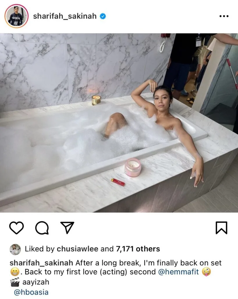 Of course, if we have those toned abs, we’d be showing them off too! That’s exactly what she did in her recent post on Instagram — by posing half naked in a bath tub with her body covered in bubbles. The bubble bath picture was captioned, “After a long break, I’m finally back on set 😁. Back to my first love (acting) second @hemmafit 🤪“, not leaving out the chance to mention HemmaFit’s Instagram account.