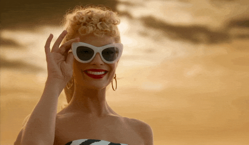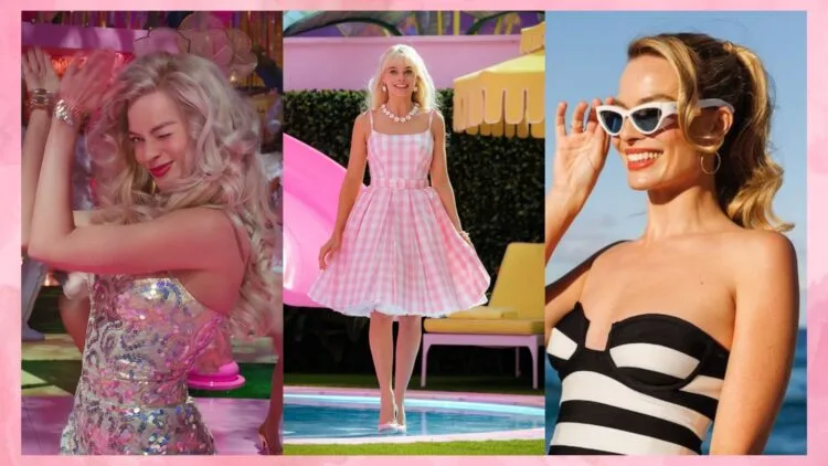 Do you still remember the teaser that started the Barbie craze? WE do. Our jaws fell when we had our first look of Robbie’s Barbie, dressed in a vintage black and white bikini, white court shoes, and matching cat-eye sunglasses. But what really got people’s attention was her haircut. A smooth, extremely high ponytail. Oh – and the vintage, curling fringe. Simply divine.