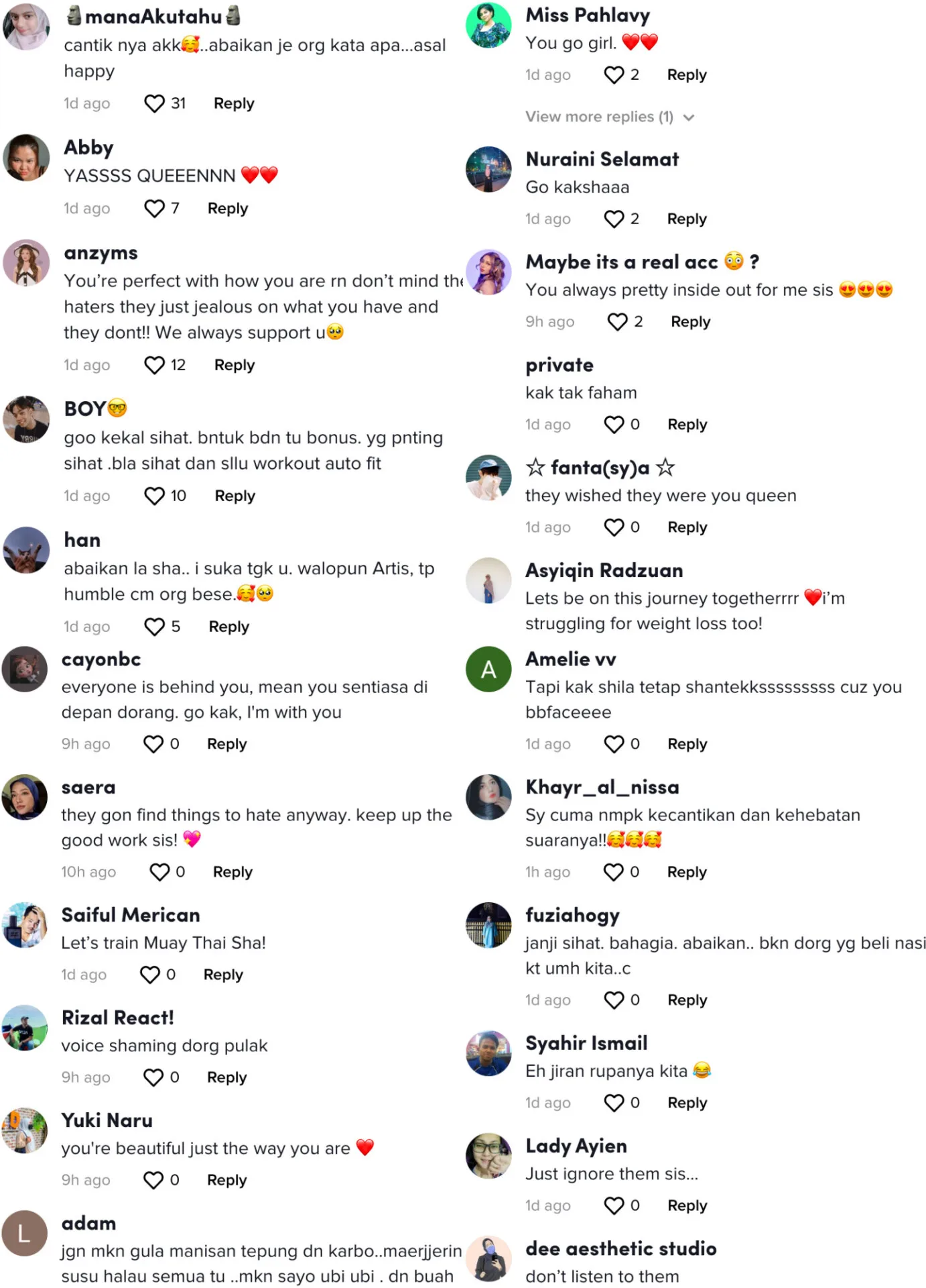 You can check out the post for more supportive comments from fans of Shila down below: