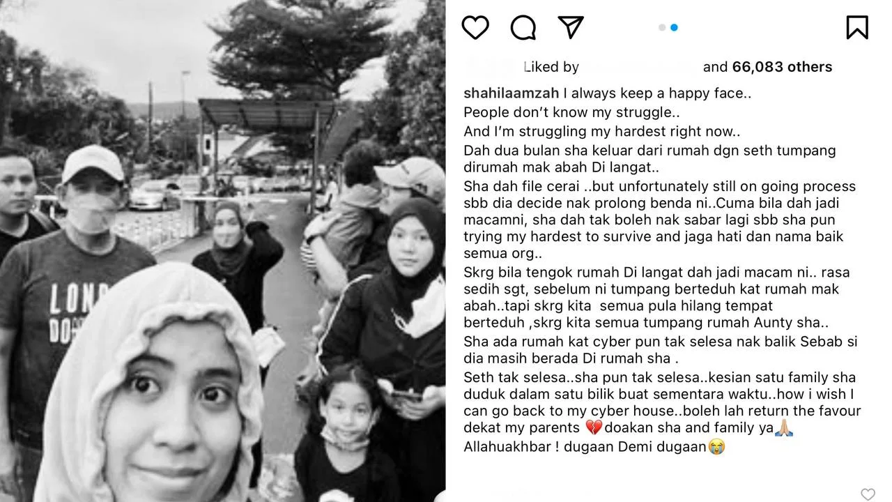 In an Instagram post of hers, which consists of a picture of her and her family, and a video of her showing the severity of the flood effects on her family, she inserted a paragraph long caption. “It’s been two months since Seth and (I) left our (our) home and stayed at (my) parents’ house in Langat. (I’ve) filed for a divorce but unfortunately the process is still on going because he decided to prolong this issue. But when it has come down to this, (I) can’t keep my cool anymore because (I’m) trying my hardest to survive too (while) trying not to offend and defame anyone,” she stated in her caption.