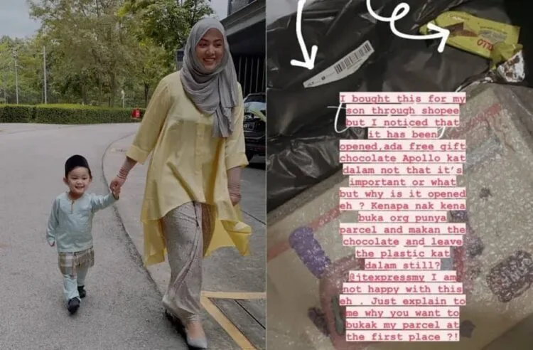 “I bought this for my son through Shopee but I noticed that it has been opened. There is also a free gift, an Apollo inside, not that it was important or anything, but why has it been opened though? Why do you need to open other people’s parcels and eat the chocolate cake and leave the plastic in there?” wrote Shila on her Instagram stories.