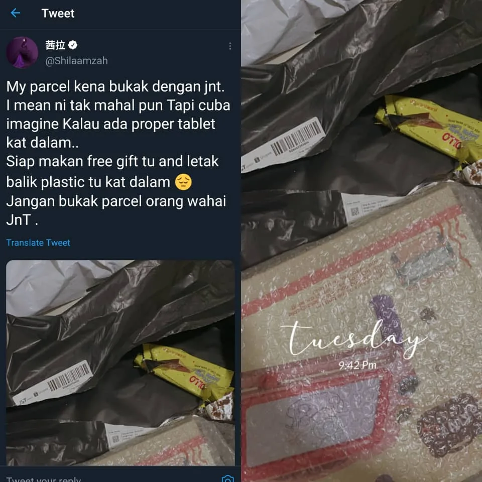 The parcel delivery service, J&T Express, has recently made news once again over an issue regarding parcels being opened and damaged by their staff. Among those who had their parcel rummaged is singer Shila Amzah.