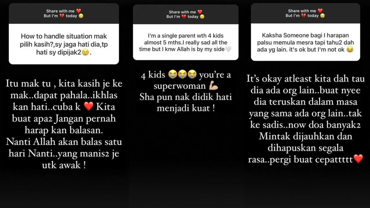 A fan opened up that she is a single mother with 4 kids, and she often feels sad too. Shila Amzah responded with a compliment on her strength, telling her that she aspires to be as strong, and called her a superwoman. While another expressed their disappointment after given fake hope, to which Shila responded with, “It’s okay, at least we know they have someone else. If they still went on with you and at the same time with someone else on the side, isn’t that sadder?”