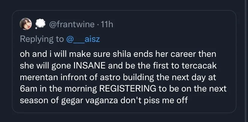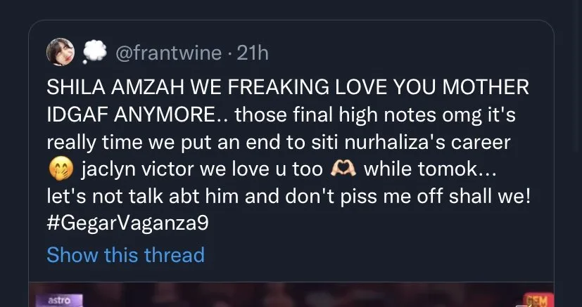 For those in the dark, the drama started after a Twitter user, who claimed to be a superfan of the singer, posted a tweet following her performance at the recent “Gegar Vaganza 9” concert over the weekend. According to the fan, @frantwine, Shila could possibly “end Siti’s career” with her splendid vocals. The post was deleted afterwards, following massive backlash from netizens.