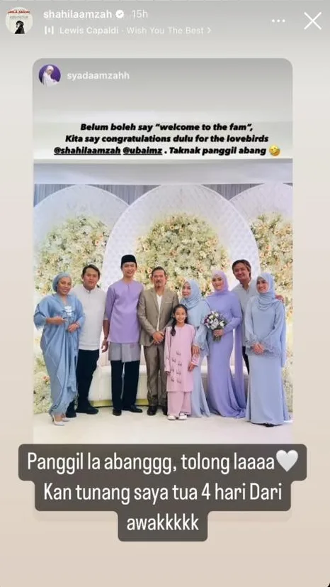 Perhaps Syada is just waiting for the podcaster to officially join the family after the wedding ceremony before she starts addressing him as Abang. At the time of writing, neither Shila Amzah nor Ubai Mz have disclose details of their upcoming wedding, including the date.