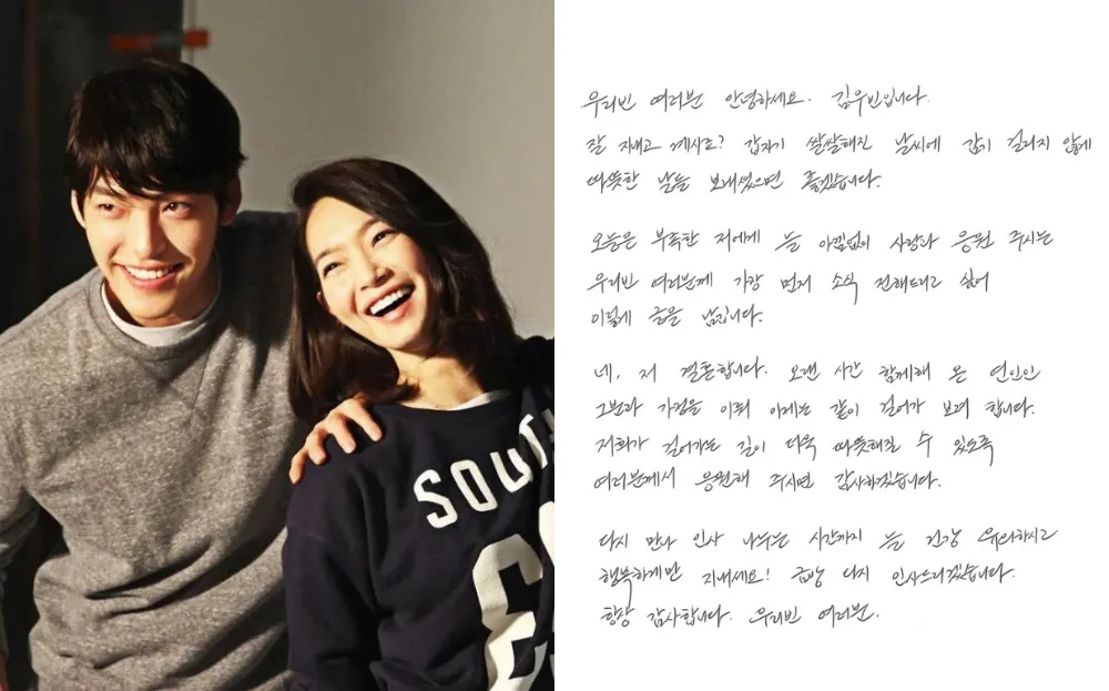 Following the marriage announcement, Kim Woo-bin shared a handwritten letter with his fan club, expressing his gratitude to his fans for their support as he builds a family with his soon-to-be wife. The 36-year-old writes, “I would be grateful if you could cheer us on so that the road we walk together becomes even warmer.”