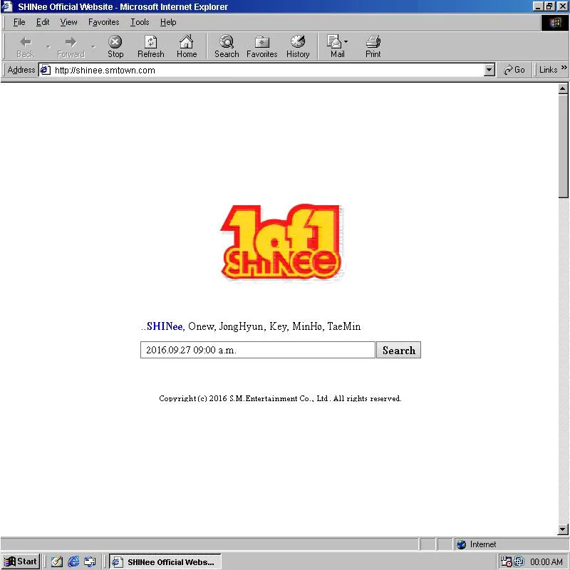The teaser image shows the logo “1 of 1 SHINee” in the middle of an Internet Explorer page, with a search bar with the names of the members and the words “2016.09.27 09:00am” below.