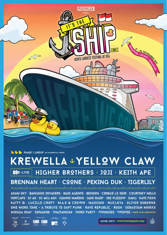 With a host of regional talent playing alongside these superstars, including Singapore DJs Rave Republic and Oliver Osbourne, Malaysian duo Twinkies, Thai-American hip-hop triple hitters Thaitanium and Indian monolith Nucleya, “It’s The Ship” 2017 promises to be the biggest edition yet of the floating festival goliath.