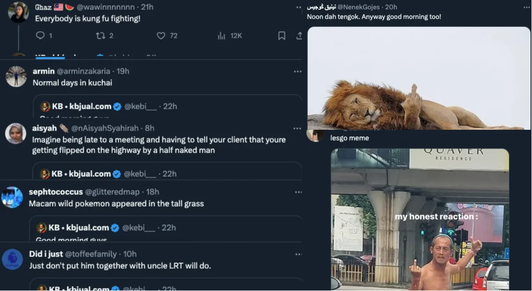 The location for the incident was also not specified but judging by the road signs and billboard advertisement, it’s been speculated that it happened somewhere in Kuchai, Kuala Lumpur. While there was not much said about the photo, netizens certainly got a kick out of it. Many shared their hilarious reactions to the post with some even turning it into new memes. Below are some of our favourites: