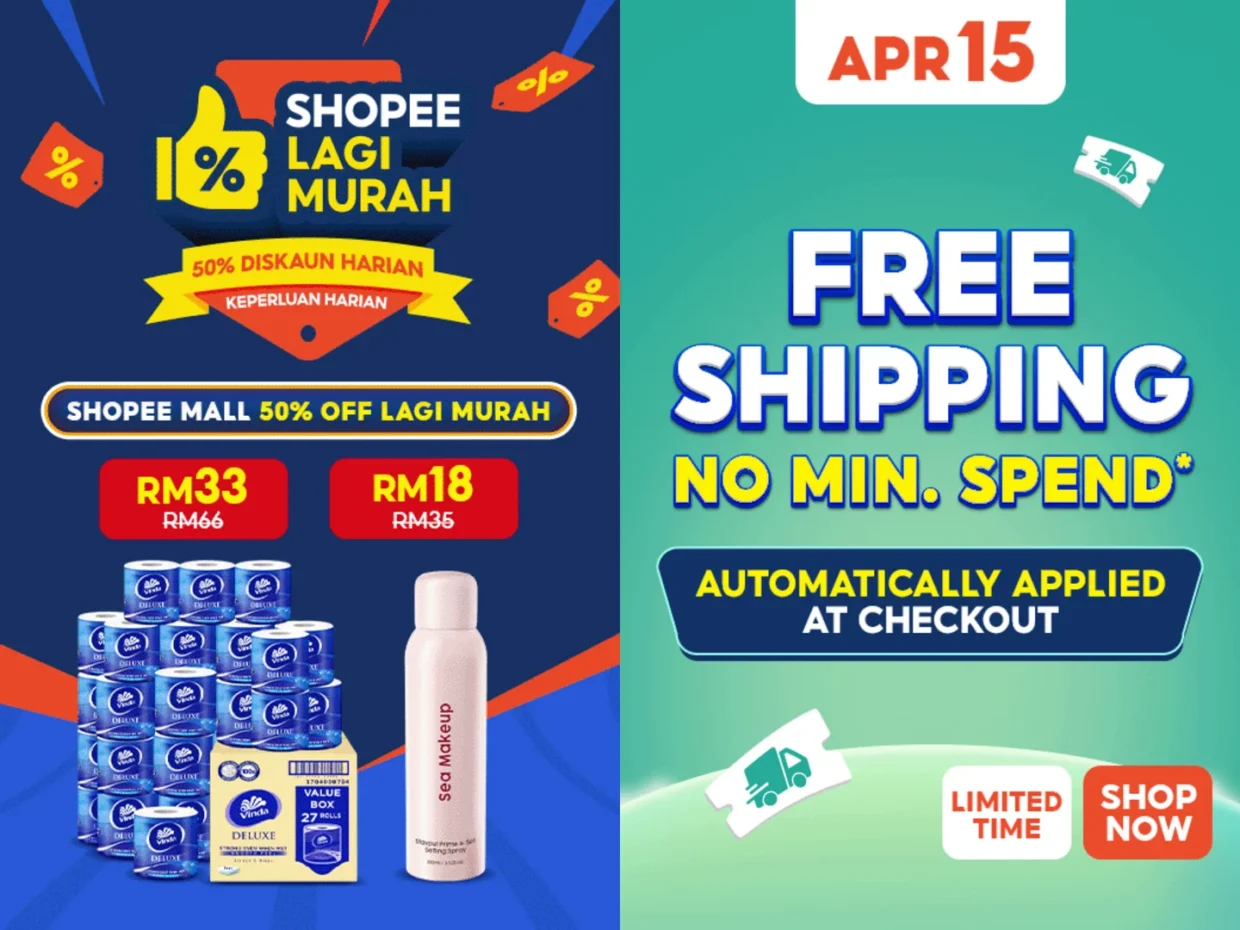 Dive into the April 15 Mid-Month Madness sale from 9th to 19th April 2026 as Shopee brings Malaysians madness-level savings with Shopee Mall 50% off Lagi Murah deals, Free Shipping With No Min. Spend, and SPayLater 0% With 3 Month Instalments.