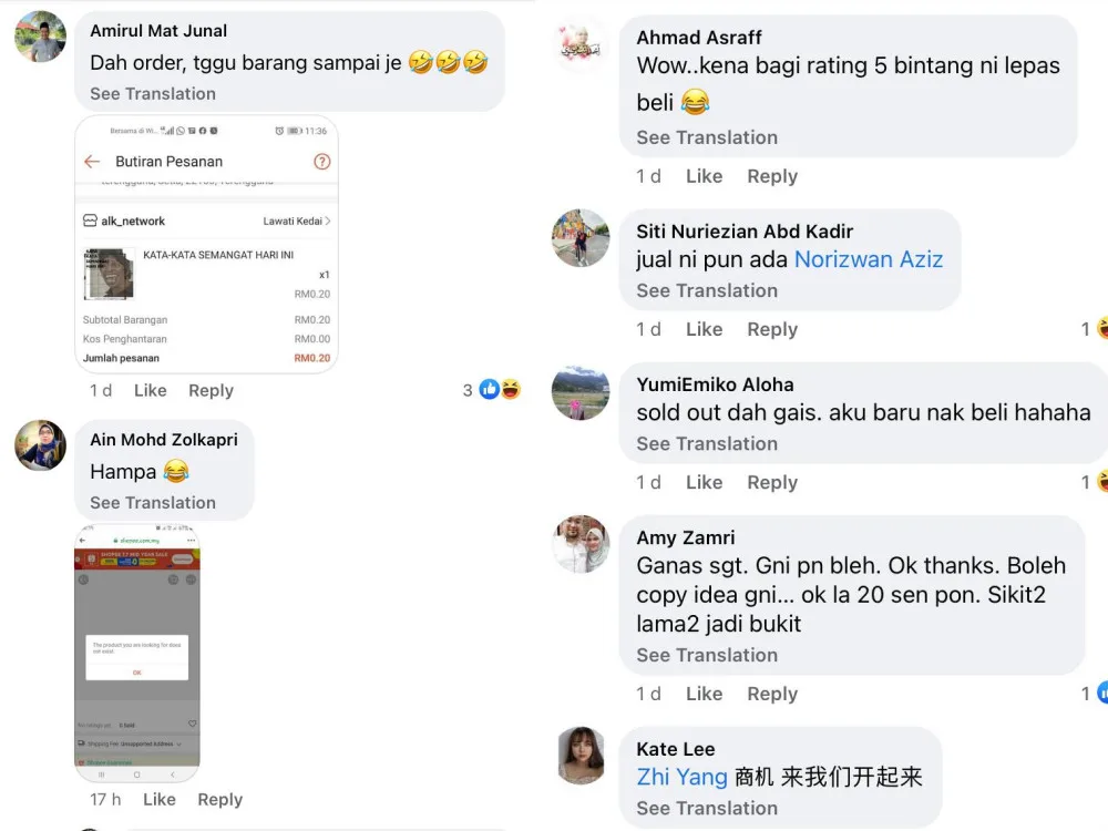 Although it sounds utterly weird, a Malaysian woman apparently paid money in exchange for some motivation. The lady, known as Effiza Abdul Rahim, took to her Facebook recently to share about the purchase she made on the Shopee app.