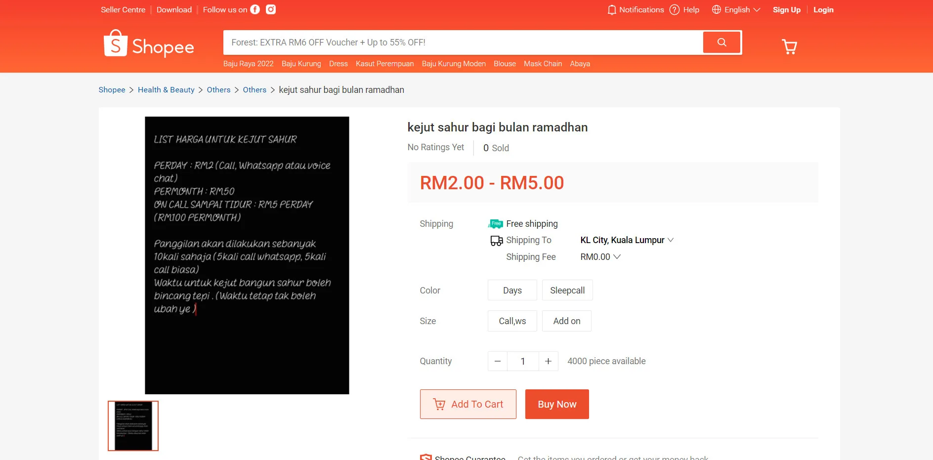 Alright, we get it, it can be quite a challenge to drag yourself away from your bed at such an hour. But what if we told you that you can actually hire someone to help wake you up for sahur? Apparently, a few merchants on Shopee have offered such services on the e-commerce platform!
