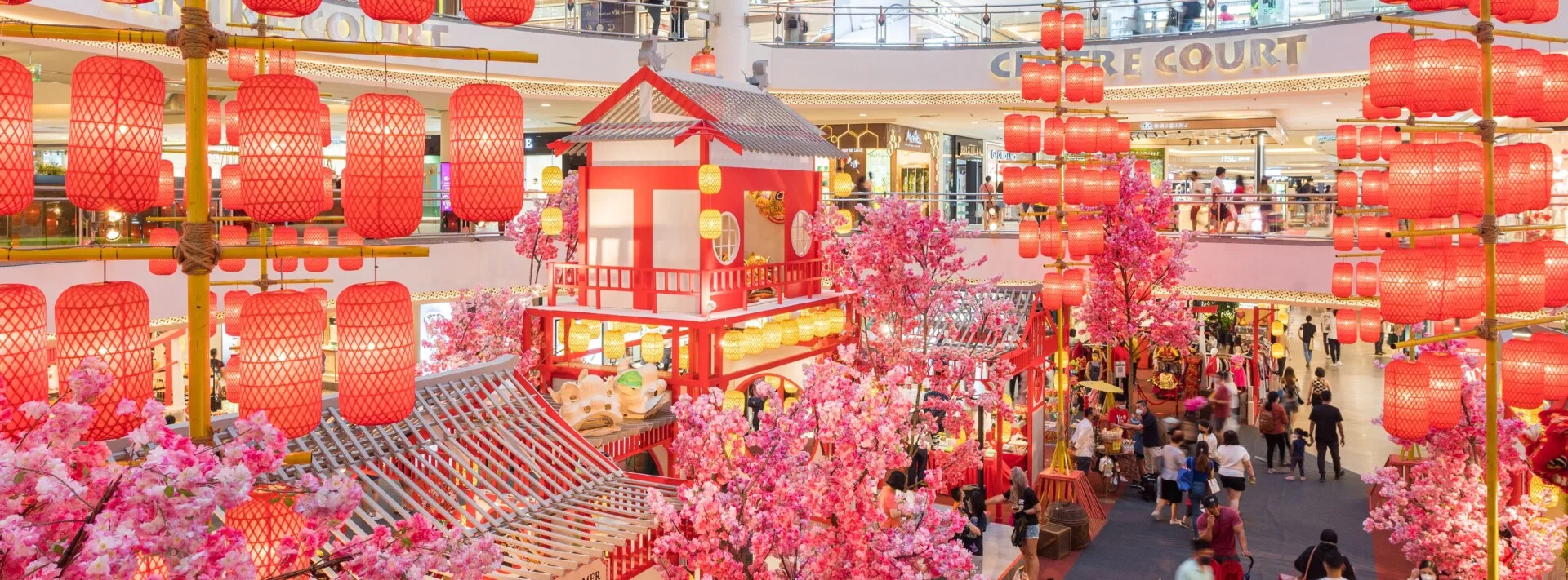 Intermark Mall has also decided to dive deep into the Chinese heritage with their theme of “Opera Opulence” that features festive oriental decorations and cutouts of graceful opera artists. You can also see collections of traditional opera incorporated into fashion with designs, symbols and colours representing the Chinese opera character archetypes.