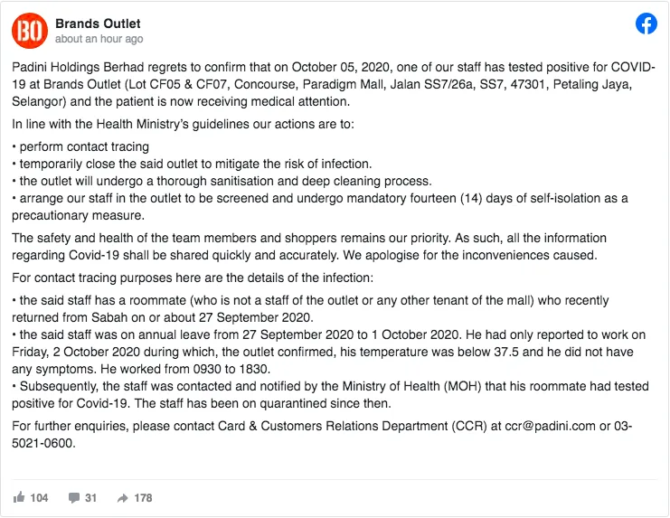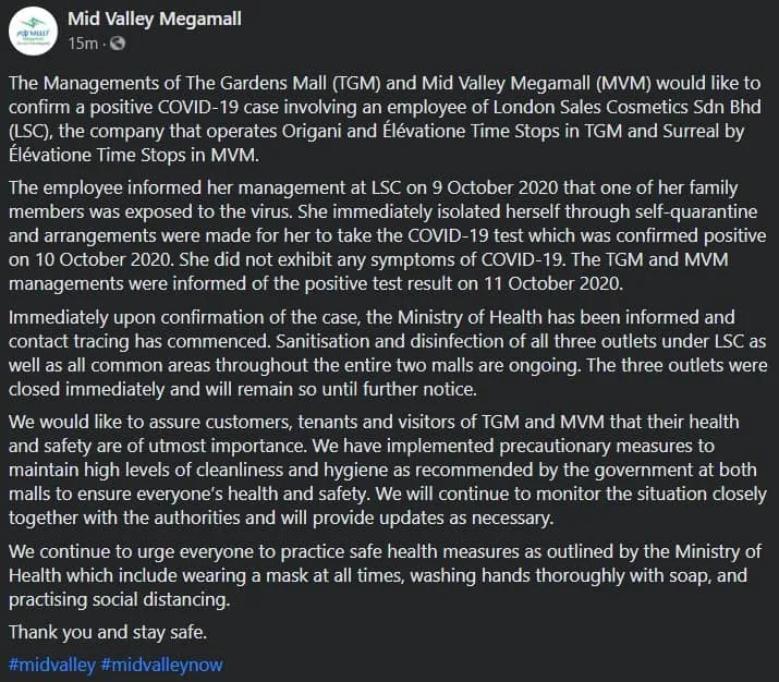 In a few short weeks, numerous malls in the Klang Valley area have been affected by the Covid-19 wave. The majority of them involved those who returned from Sabah.