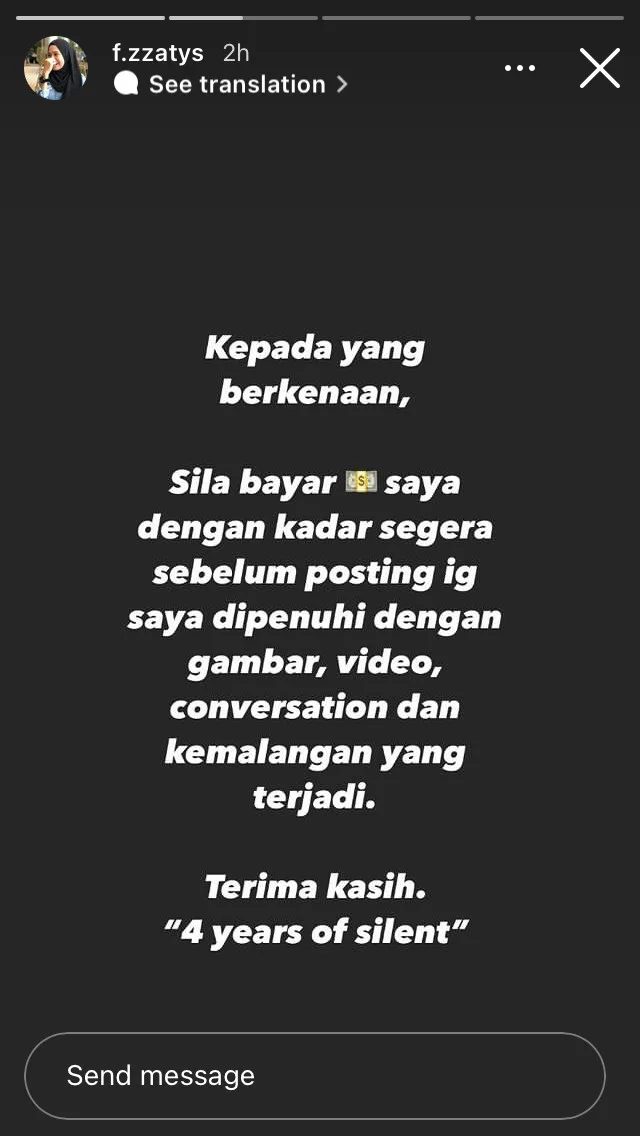 In a caption written by Fara via her personal Instagram, she had threatened to release a controversial video if the man does not pay up. Shortly afterwards, she uploaded two clips with a 2 second duration showing a man’s shirtless figure and a screenshot conversation with someone.