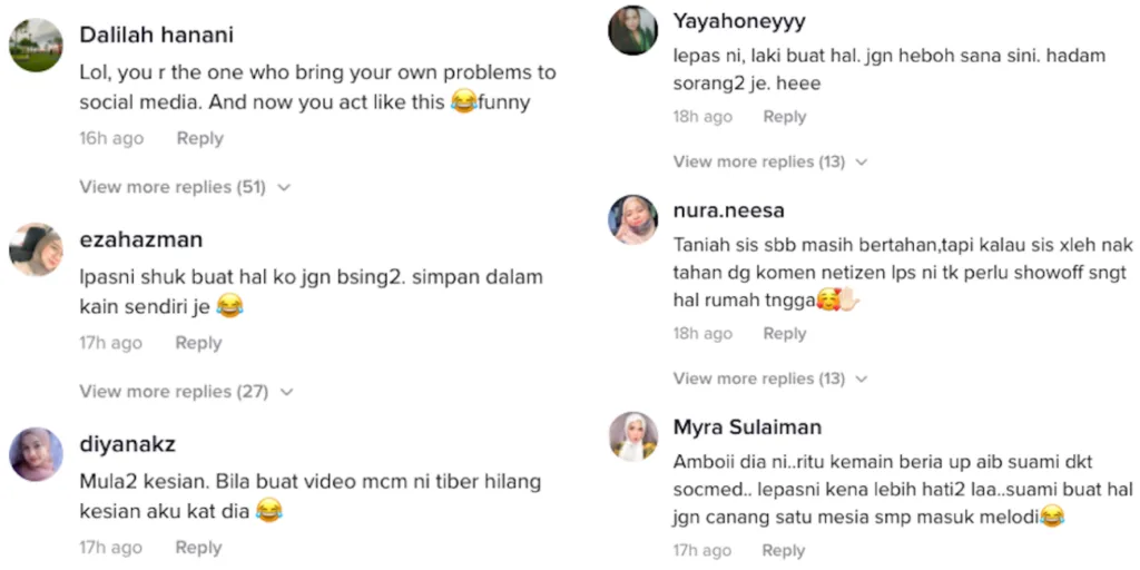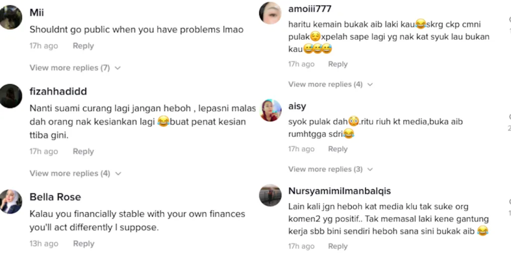 To quote one commentator, “Just in case your husband cheated again, please don’t make a fuss about it to the public. People will not sympathise with you after this. After all the drama that happened, you’ve lost my respect.” Check out some of the comments here: