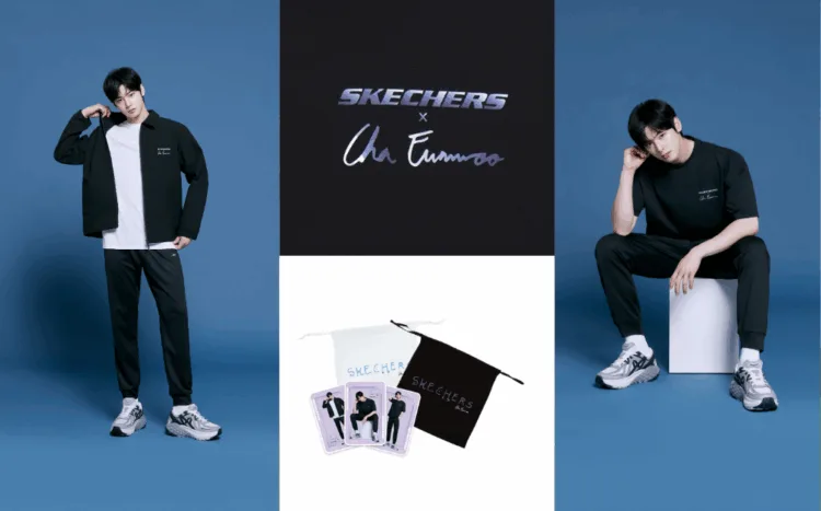 To make this release even more special, each purchase includes an exclusive Skechers x Cha Eun-woo storage bag. The bag features a playful, doodle-style version of the Skechers logo, personally drawn by Cha Eun-woo, alongside his handwritten name. It’s a charming, collectable bonus that reflects his unique personality.