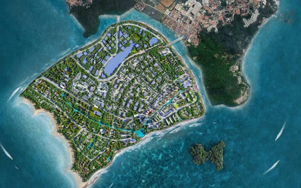 Part of the planned development on the island includes the Green Tech Park (GTP) and the Heart of the Island (Hoti) business district, which will attract high-impact investment. The GTP would also feature research and design facilities, digital technology infrastructure, e-commerce and business process outsourcing. The Hoti business district is described as a waterfront commercial hub that news outlets say would serve as the “pulse of the island”.
