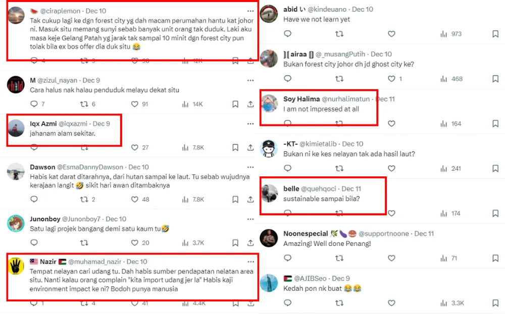 Twitter account Skyscrapers MY have shared news about the island, dubbing it “the new Forest City”. Netizens have also shared scepticism toward the project’s success, adding that the island’s development will also contribute to global warming. However, the Penang Chief Minister insists that the island will not follow in the footsteps of Forest City. In May, Chow clarified that the project is compliant with environmental, social and governance (ESGF) standards and that the project’s proponents are trying to make the project sustainable with LRT depots, green spaces and waterways.