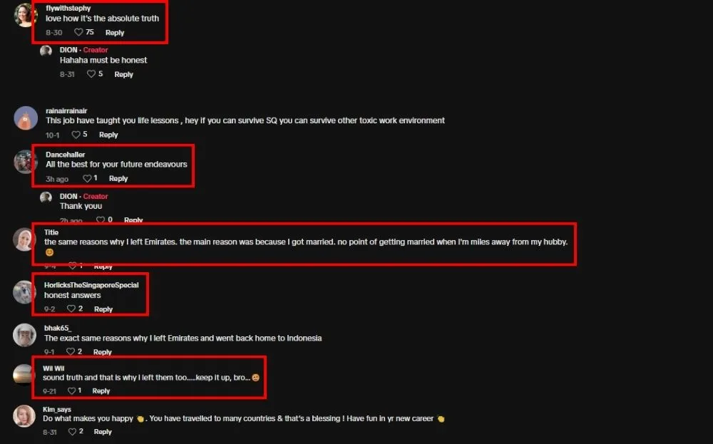 Many netizens shared their reactions to the videos, mostly saying the reasons were valid. Some former cabin crew members also shared the same experience, saying that the same reasons are why they left their jobs. Many also sent well wishes for Dion, hoping he’ll find success in his future endeavours. According to his video, Dion is currently pursuing a communications degree while running a small business with his sister.