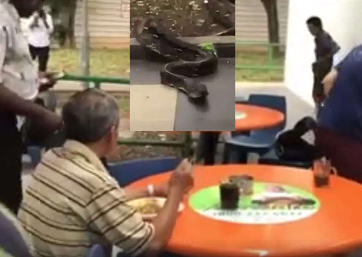 Facebook user Jeff Cym shared the snake encounter, which took place at Bukit Gombak coffee shop, on the Nature Society (Singapore) Facebook page on Sunday (4th June). In the video clip, diners at the eatery were fleeing the scene after spotting the giant python.