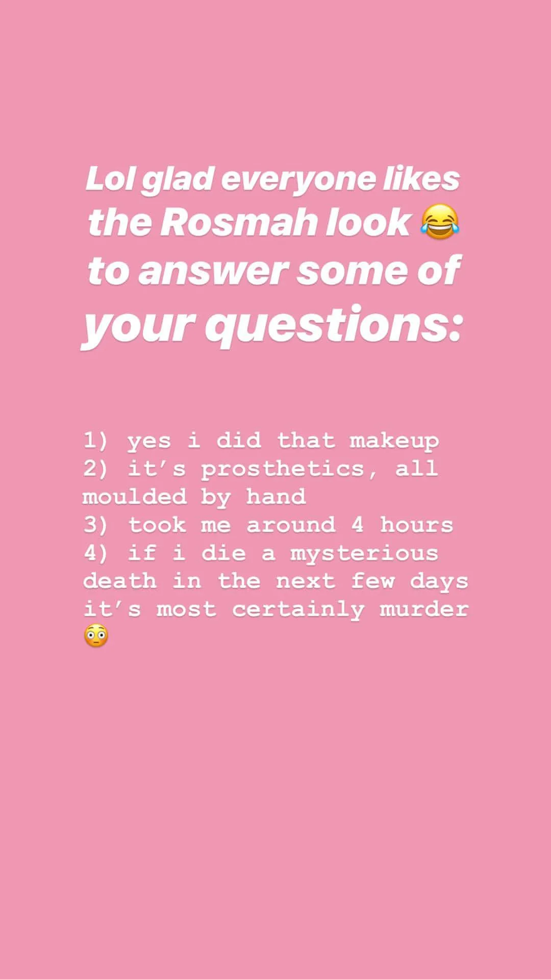 On her IG stories, Xiaxue revealed that the look took her around 4 hours to complete and it was achieved using makeup and hand-made prosthetics. The fashionista also joked that if she were to die in the next few days, “it is most certainly murder”.