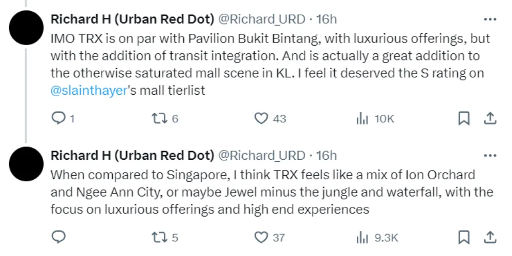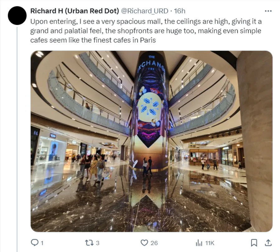 In comparison to Singaporean malls, Richard thinks The Exchange TRX feels like a mix of ION Orchard and Ngee Ann City or the Jewel Changi Airport without the jungle and waterfall. What do you think about this review?