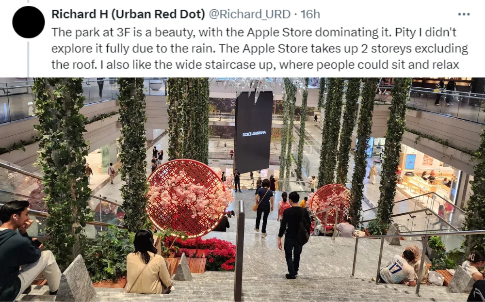 He also praised the TRX City Park but couldn’t fully explore it because of the rain. Richard also said he liked the centre staircase, saying it’s great for visitors to sit on and relax. The Singaporean opined that The Exchange TRX is on par with Pavilion Bukit Bintang and that the mall deserved its given “S-Tier” rating, referencing a local Twitter user’s viral mall ranking tweet.