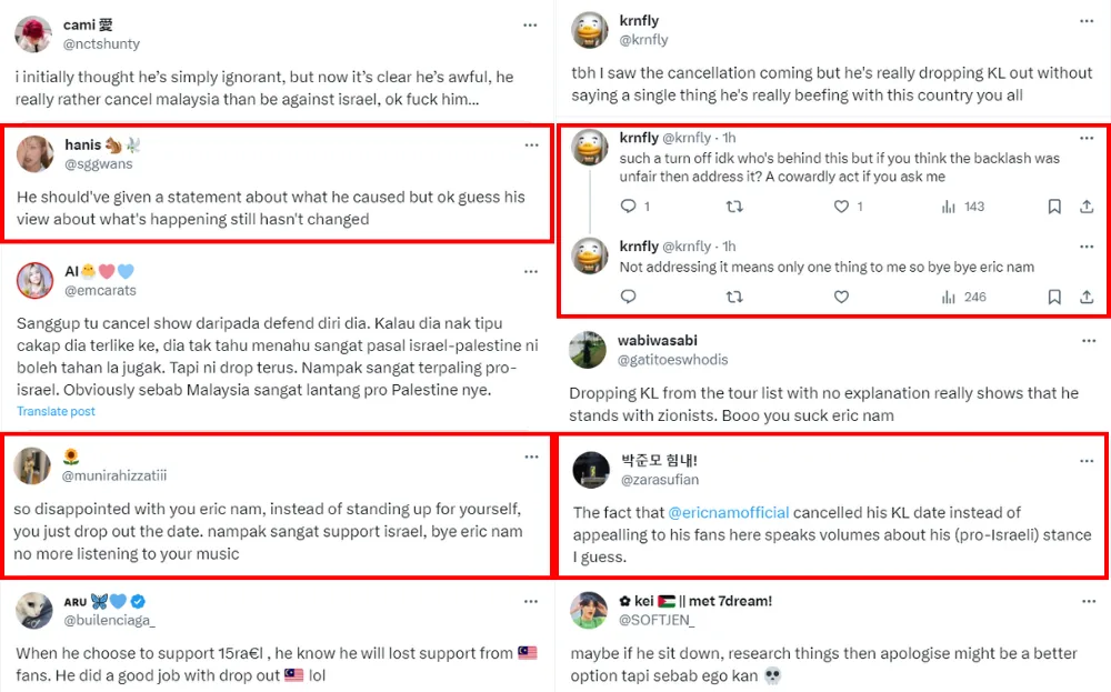 While Eric and his team did not share the reason for the change, fans suspect it was because of the intense backlash he faced. K-pop fans, both local and international, shared mixed views over the announcement. While some fans were saddened by the cancellation, some also condemned those who “bullied” him into cancelling the date, saying that liking the post doesn’t reflect his views.