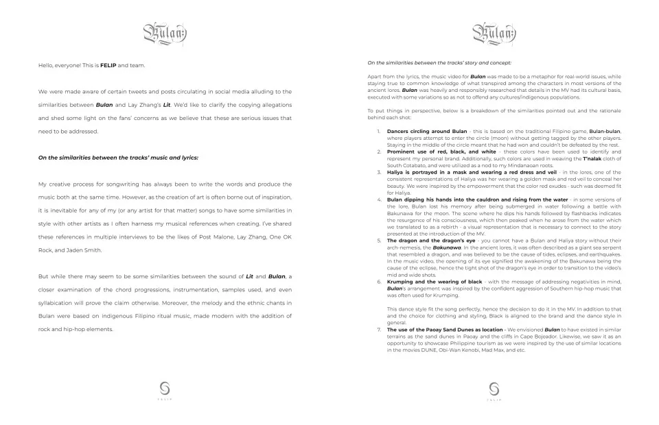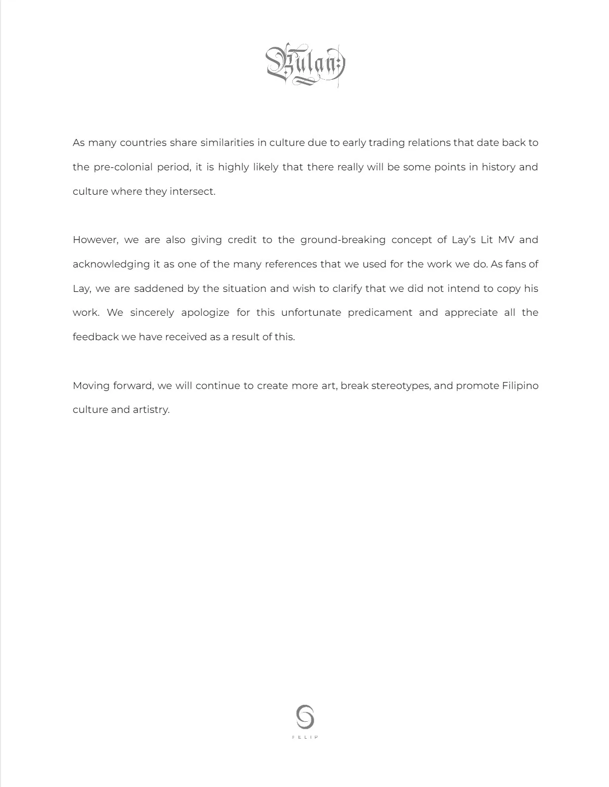 In response to the massive backlash, FELIP and his team have released a statement to address the accusation. In the lengthy statement which was posted on his Twitter account, the singer reveals that his creative process for the song “Bulan” takes inspiration from a lot of artists. This include the likes of Post Malone, One OK Rock and also Lay himself.