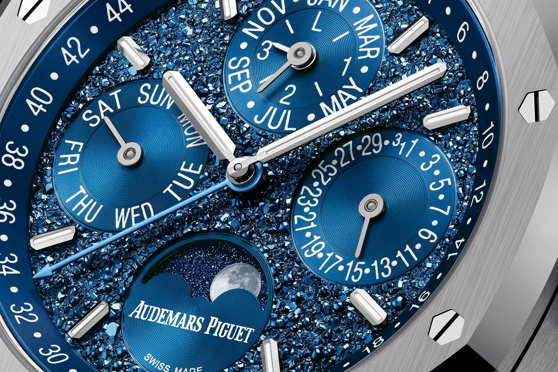Mayer worked with Audemars Piguet’s teams to create a picturesque dial, whose texture and vastness add depth to a complication that has shaped the world of Audemars Piguet since its founding. Every detail works together to give the timepiece a sense of infinity.
