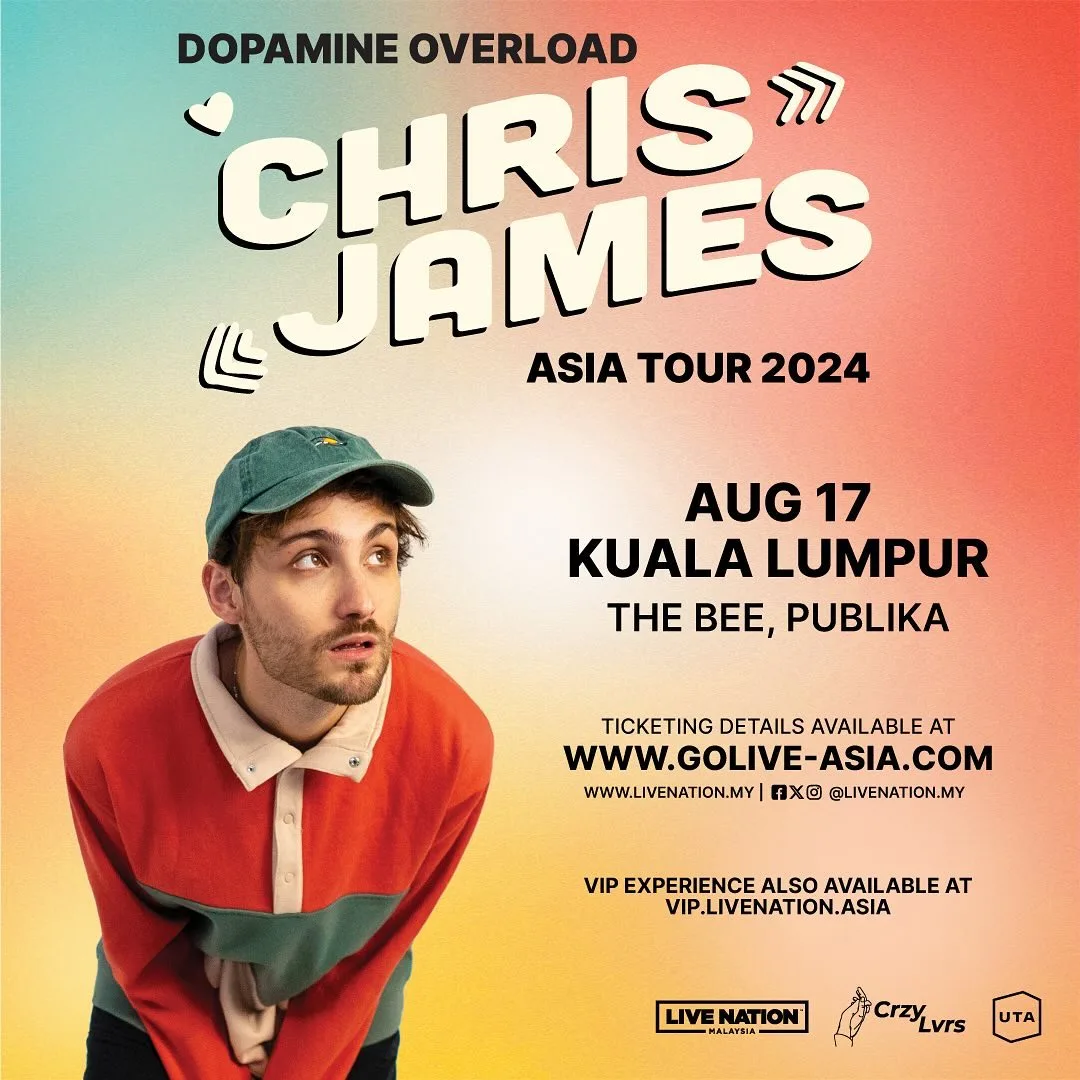 The talented singer-songwriter Chris James will be coming to Malaysia this August for his 2024 Asia tour, “Dopamine Overload Asia Tour”. The tour will kick off in Hong Kong and continues through several cities Asia, including Kuala Lumpur, Bangkok, Singapore, Taipei, Seoul and Tokyo.