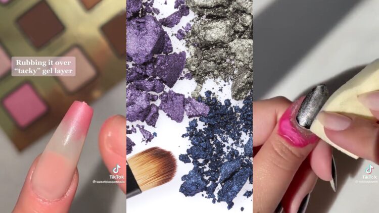 All you need is your own nails, some eyeshadow, and a gel manicure in a neutral shade – like off-white, beige, or pale pink. This is such a great nail polish trend, and most of us own at least one or more eyeshadow palettes that we’ve recently lost interest in. Here’s how to ‘nail’ this trend: