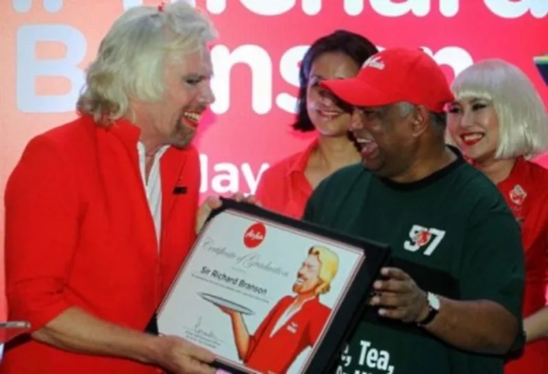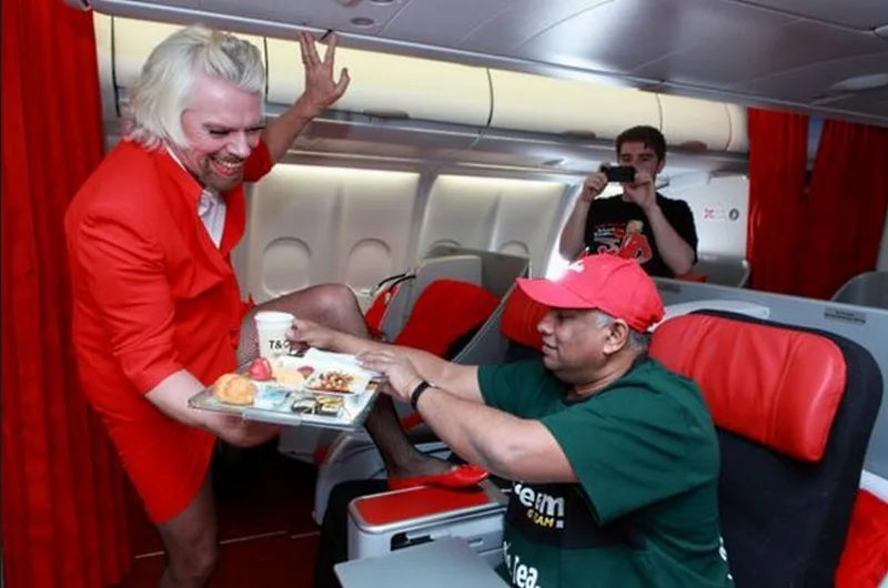 In 2010, Virgin Group’s CEO Sir Richard Branson and AirAsia champ Tan Sri Tony Fernandes wagered on their respective Formula One (F1) teams finishing ahead of the other during their debut season in Abu Dhabi. Sir Richard Branson lost, which meant that he would serve as a female flight attendant on board the AirAsia airline.