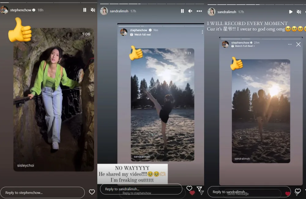 Well, it seems the duo’s hard work was enough to impress the King of Comedy. Yesterday (16th July), Stephen Chow expressed his approval and acceptance of the duo by reposting their videos on his Instagram Stories with a large thumbs up. Needless to say, Sandra was freaking out over the repost and said as much in her own Instagram Story! “I will record every moment!” she promised. “Because it’s Stephen Chow!!!”