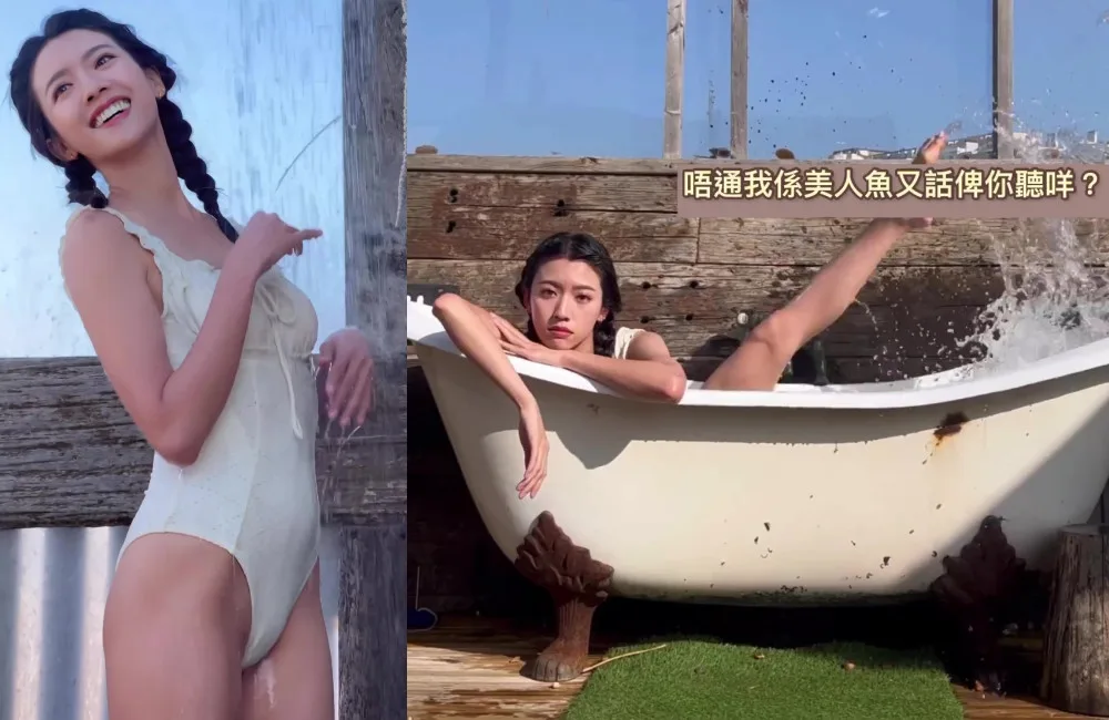 She also ensured she hit the “young and curvy” requirement, marking off a section of her video to show herself in a white swimsuit, playing under a shower. However, she then cut to herself looking bored in a bathtub with the caption: “(Would it help if) I tell you that I’m a mermaid?”