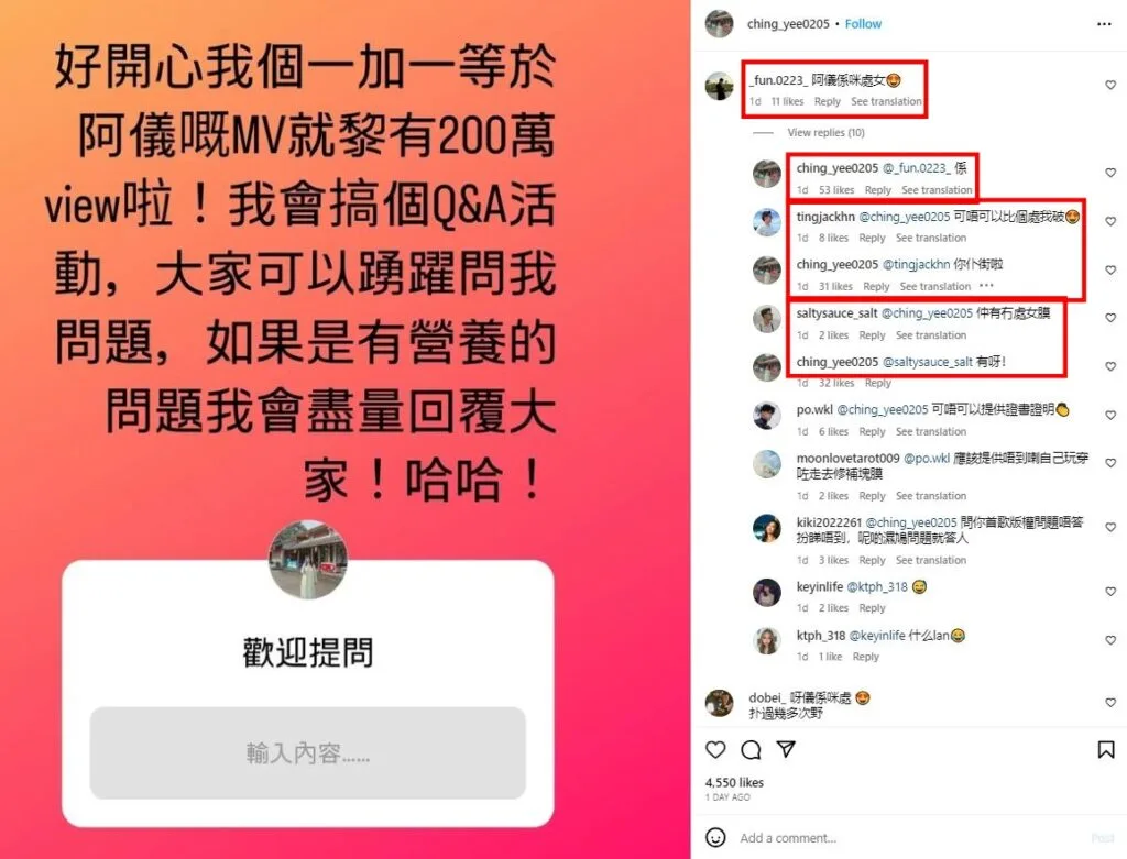 But, the blow to her career allegedly hasn’t affected Sit Yeng Yi too badly. In fact, she recently opted to celebrate her “One plus one equals A Yi (一加一等于阿仪)” MV reaching 2 million views with a Q&A! Unfortunately, things didn’t quite go the way she planned.