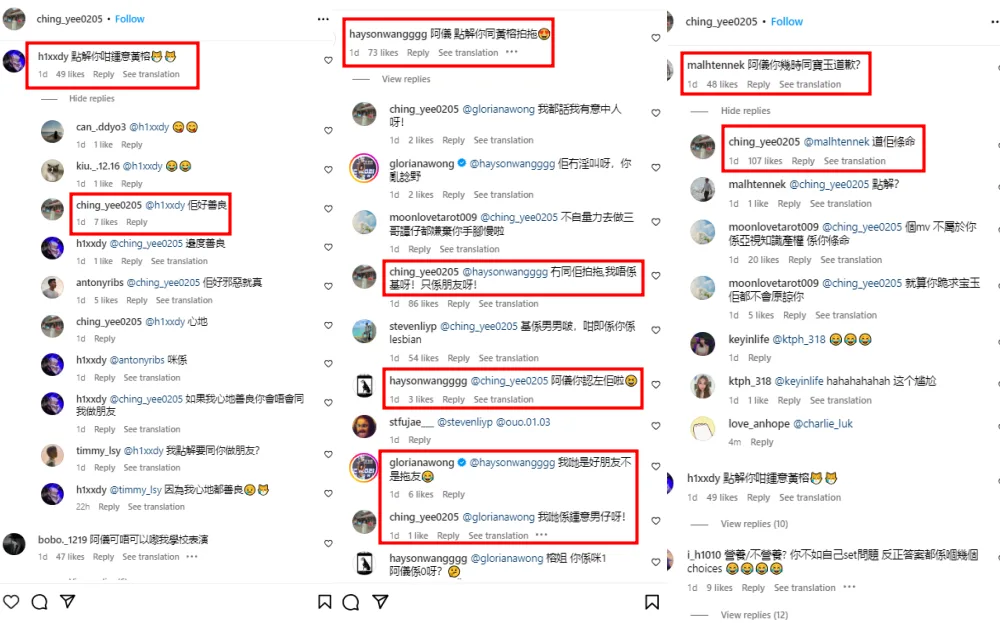 Unfortunately, her wholesome response did not deter questions about her relationship with Gloriana. “I’m not dating her, I’m not gay!” Yeng Yi exclaimed. “(We) are just friends!” Relentless, the netizen then asked if she was into drag, to which Gloriana clarified: “We are good friends, not drag friends.” Yeng Yi also tagged Gloriana in another comment, emphasizing: “We like boys!”