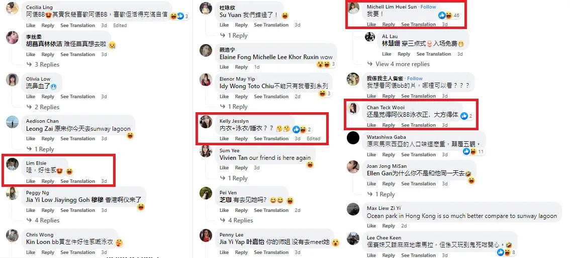 Fans were quick to leave praises in the comments section, with several cooing over how sexy Yeng Yi looked. Local internet celeb Han Xiaoai (韓曉噯) even left a comment saying: “I want (to join)!” However, some netizens were apparently left bewildered by Yeng Yi’s style of swimsuit. “Underwear (plus) swimsuit (or) pyjamas??” one comment asked. Others claimed it was simply lingerie repurposed as a swimsuit.