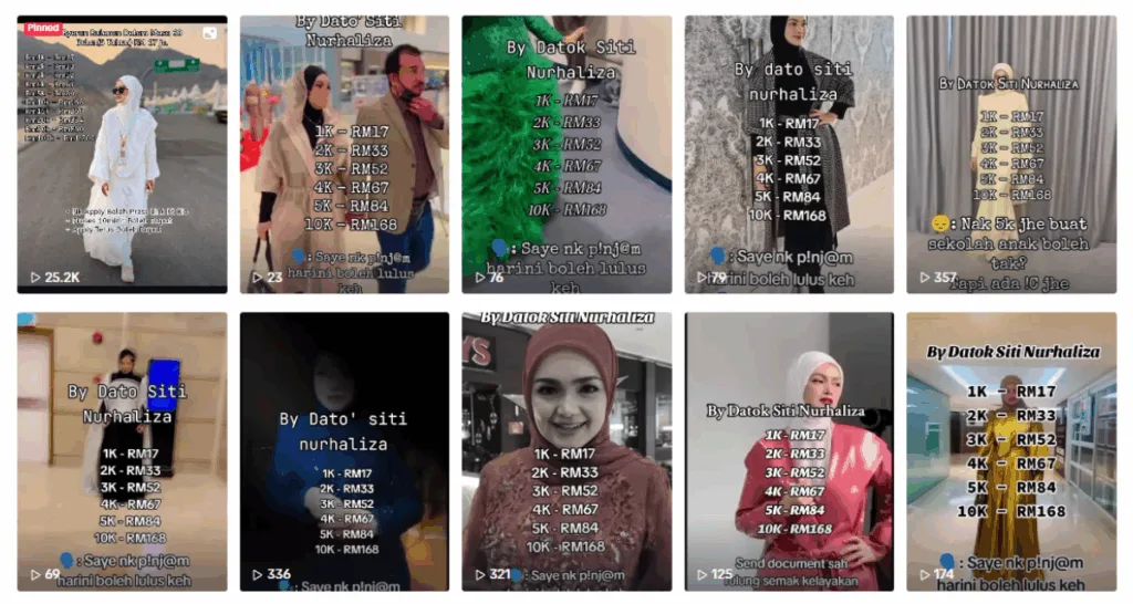 Recently, the songstress took to Instagram Stories to call out a licensed moneylender for misusing her name for a TikTok video. The video claimed that the business was endorsed by Siti Nurhaliza and even included her image. The rest of the captions included details of the loan. A quick look shows that the account would repeatedly use Siti Nurhaliza’s name and image to promote the moneylender business.