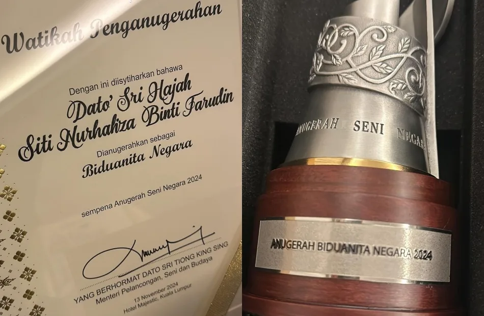 Congratulations to Siti Nurhaliza! According to reports, the title was presented to the performer by the Deputy Minister Khairul Firdaus Akbar Khan, at the Ministry of Tourism, Arts and Culture’s (MOTAC) 2024 National Arts Awards, which took place last night (Wednesday, 13th November). Along with the honorary title, the superstar also received RM30,000 in cash and a trophy.
