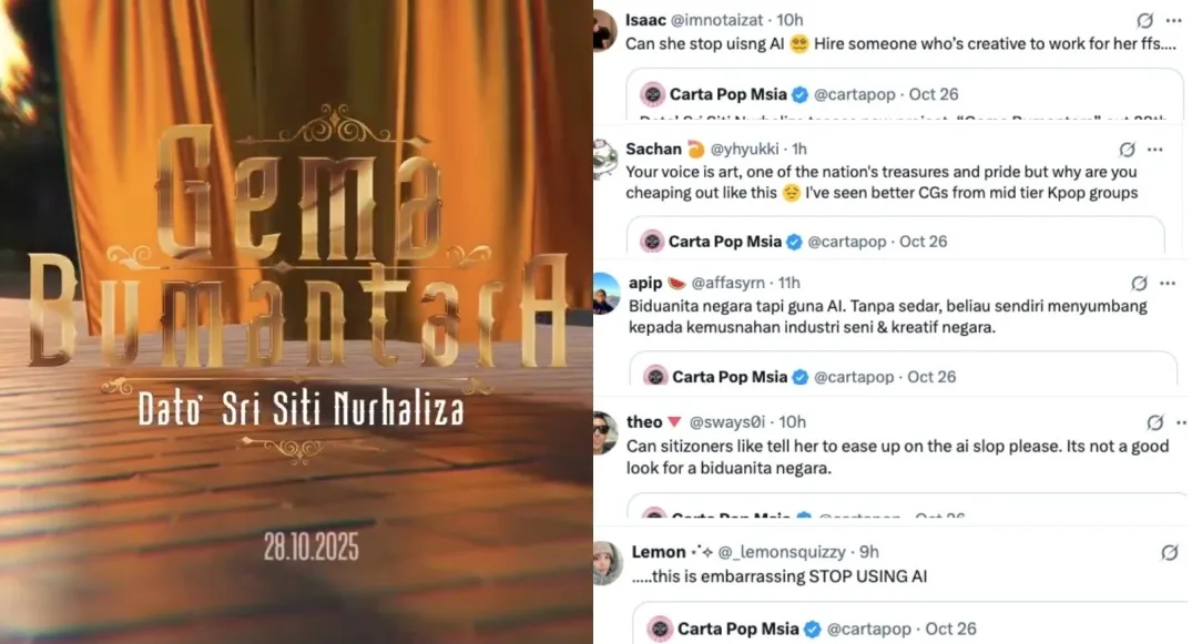The songstress shared a teaser of the track on Instagram and, although fans were excited about the release, many criticised her for using AI-generated visuals. Fans on Twitter expressed disappointment over the use of AI in the song’s promotion. Others strongly urged Siti to continue working with human creatives, noting that many would be more than willing to collaborate with an icon such as herself.
